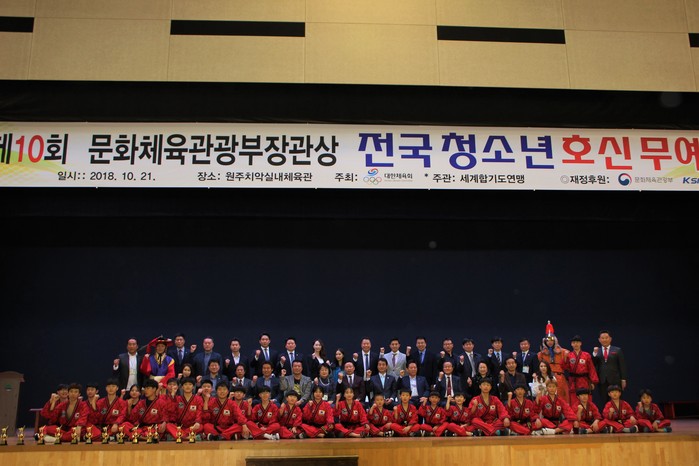 [세계타임즈 김인수기자] 지난 21일 오전 강원도 원주시 원주치악실내체육관에서 "제 10회 문화체육관광부장관상 전국청소년 호신무예대회"가 성대하게 열렸다. 대한체육회가 주최하고 (사) 세계합기도연맹, TAFISA/UIA 국제회원이 주관하는 이번 대회는 문화체육관광부, 국민체육진흥공단이 후원하는 대회이다.