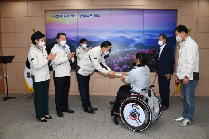 [광주=세계타임즈 손권일 기자] 광주광역시의회(의장 김용집)는 18일 광주광역시의회 열린시민홀에서 제41회 전국장애인체육대회에 출전하는 광주시 선수단을 격려하며 광주의 위상을 높여 달라고 당부했다.