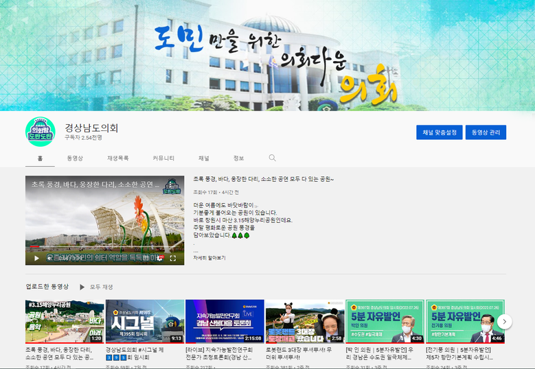 붙임 : 경상남도의회가 운영 중인 유튜브 채널.
