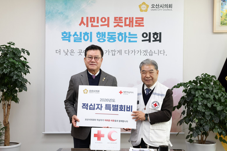 이 회장은 또 “오산은 나눔이 일회성에 그치지 않고 생활 속 실천으로 이어지는 도시”라며 “적십자 활동에 보내주신 오산시의회와 오산시민들의 마음에 깊이 감사드리며 적십자도 그 신뢰에 보답할 수 있도록 도움이 필요한 이웃에게 실제로 힘이 되는 활동을 이어가겠다”고 말했다.