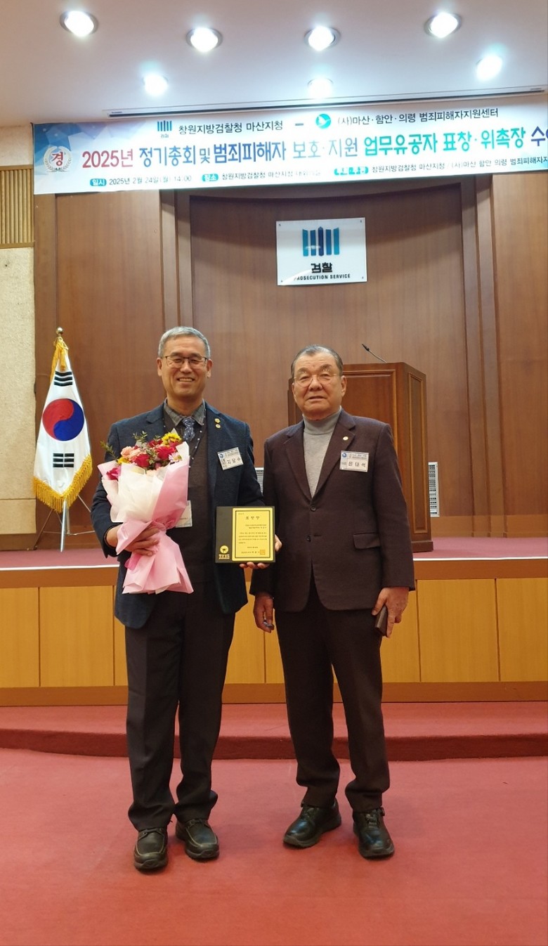 [세계타임즈]최성룡기자 =창원지방검찰청 마산지청(지청장 김지완)과 (사)마산·함안·의령 범죄피해자지원센터(이사장 윤태석)는 2025. 2. 24.(월) 마산지청 대회의실에서 김종식 사무처장의 진행으로 2025년 정기총회 및 범죄피해자 보호·지원 업무유공자에 대하여 표창 수여식을 개최하였다.