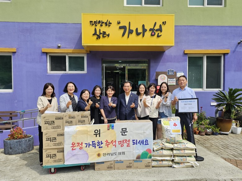 가나헌은 여수 화양면 소재 중증장애인 거주시설로 이날 위문은 추석을 맞아 따뜻한 온정을 나누고 더불어 살아가는 이웃 사랑의 마음을 전하기 위해 이루어졌다. 또한 이날 추석 위문품과 함께 지속되는 폭염에 건강하게 보낼 수 있도록 전라남도 폭염 위문품도 전달됐다.