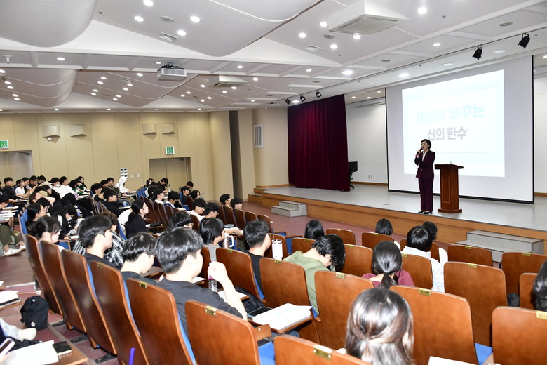 [광주 세계타임즈=손권일 기자] 광주광역시의회 신수정 의장은 지난 18일 광주대학교 교양 교과 ‘열린인생론’의 특강 강사로 초청되어 학생 150여 명이 참석한 가운데 ‘세상을 바꾸는 신의 한 수’라는 주제로 강연을 진행했다.