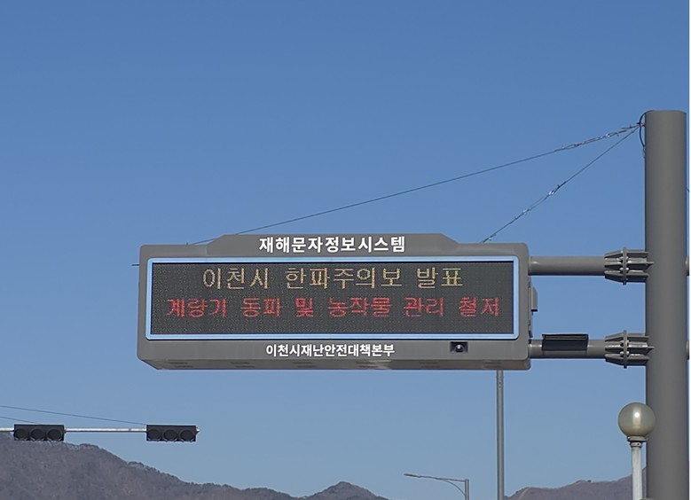 [이천시 세계타임즈=송민수 기자] 이천시(시장 김경희)는 지난 2일 2025년 겨울철 첫 한파특보가 발표됨에 따라 시민 피해 예방과 신속한 대응을 위해 한파 전담반(T/F)를 운영한다고 밝혔다,