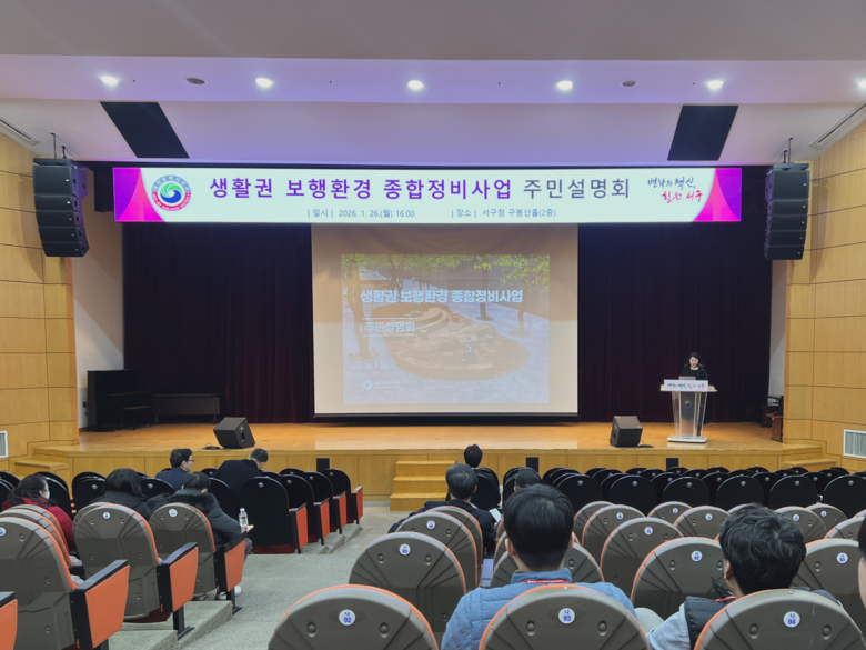 [서구 세계타임즈=이채봉 기자] 대전 서구는 구청 구봉산홀에서 둔산동 법원 일대 ‘생활권 보행환경 종합정비사업’ 주민설명회를 개최했다고 29일 전했다.