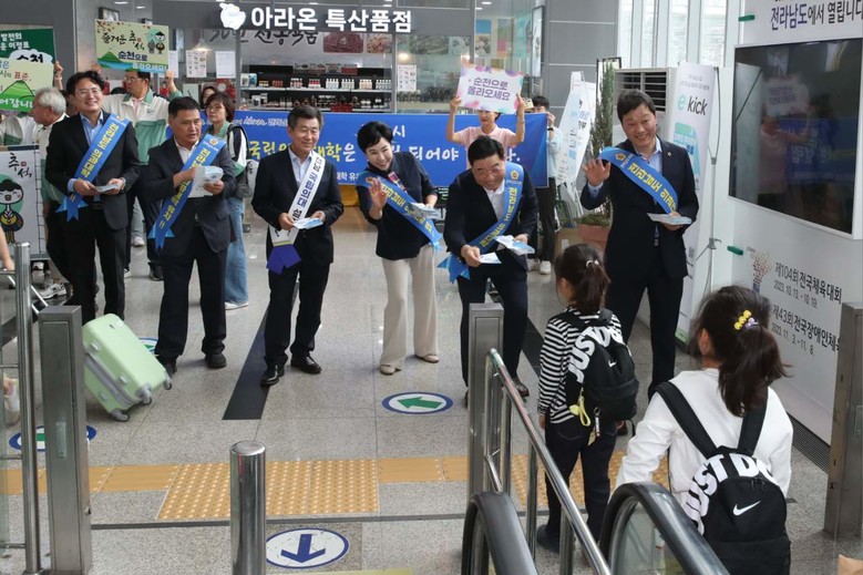 [전남 세계타임즈=우덕현 기자] 전라남도의회 서동욱 의장은 27일 순천역 일원에서 추석 명절을 맞아 고향에 방문한 귀성객들을 대상으로 전남 국립 의과대학 유치 홍보캠페인에 나섰다. 전남도의회 ‘전라남도 의과대학 유치 대책위원회’를 주축으로 진행된 이날 캠페인은 순천역과 목포역 두 곳에서 진행됐으며 순천.목포시의회 의원과 사회단체 등 170여 명이 동참했다.