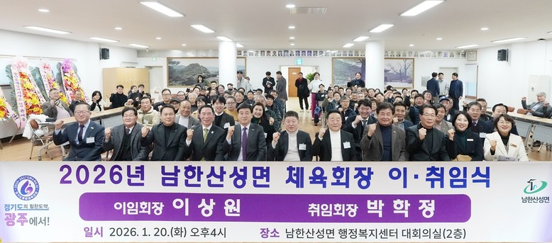 [광주시 세계타임즈=송민수 기자] 광주시 남한산성면 체육회는 지난 20일 남한산성면 행정복지센터에서 ‘2026년 남한산성면 체육회장 이·취임식’을 개최했다.