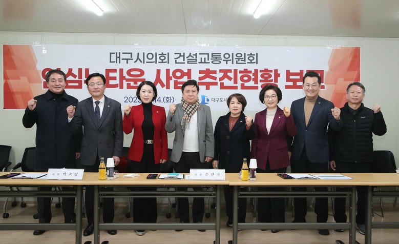 [대구 세계타임즈=한성국 기자] 대구시의회 건설교통위원회(김지만 위원장)는 제298회 임시회 기간 중인 2월 14일(화) 안심뉴타운 도시개발 현장과 대구혁신도시 복합혁신센터 건립현장을 찾아 사업 진행 상황을 점검하고 성공적인 사업추진을 당부했다.