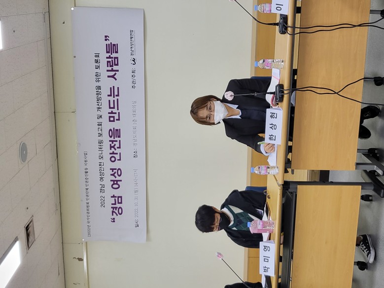 이번 토론회는 경남여성단체연합에서 주관한 행사로, 2022년 진행된 경남여성안전 모니터링 결과 보고와 동시에 앞으로의 개선 방향을 시민과 전문가들이 함께 모색하기 위해 개최되었다.