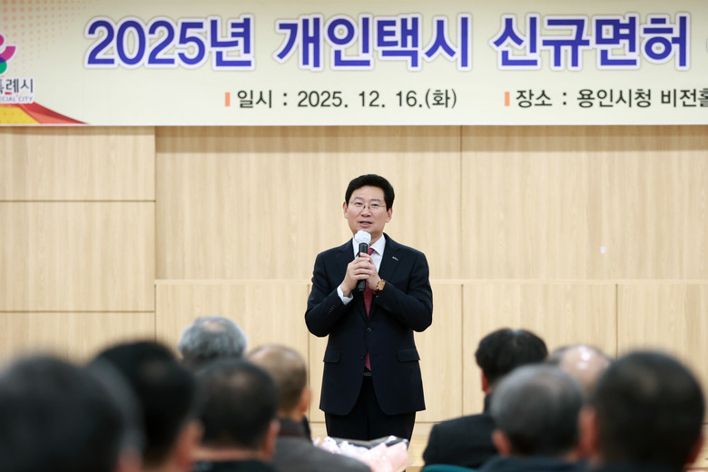 [용인시 세계타임즈=송민수 기자] 용인특례시(시장 이상일)는 16일 시청 비전홀에서 ‘2025년도 개인택시운송사업 신규 면허증 수여식’을 개최하고, 신규 면허자 35명에게 면허증을 전달했다.