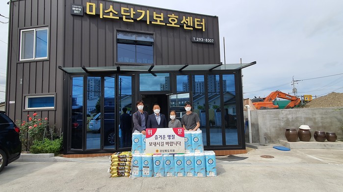 이날 복지시설 위문은 관계자 동행을 최소화하고 시설내부 방문 없이 입구에서 위문품을 전달하는 등 코로나19 상황에 맞는 위문방법으로 실시하였다.