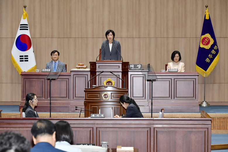 한편, 이날 본회의에서는 ▲ 박수기 의원, “광주 도시철도2호선 상부도로 개방 또 지연! 2026년 개통난망! 총체적 난국 속 시민 인내 한계 다다라, 광주시는 책임 있는 대책 발표하라!” ▲ 강수훈 의원, “광주 인구, 140만명도 무너졌습니다. 광주의 가장 조용한 재난, 청년 유출을 막아야 합니다.” ▲ 채은지 의원, “광주 대선 공약, 국민주권정부 국정과제에 최우선 반영돼야”라는 주제로 5분 자유발언이 이뤄졌다.