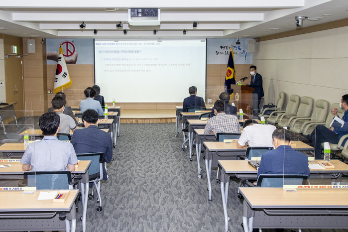 8월 20일(금) 제325회 임시회 개회 후 도의회 세미나실에서 개최된 특강은 경북선거관리위원회 김용철 지도담당관을 초청하여 공직 선거법 주요 개정내용, 평상시 가능한 선거운동, 2022년 선거관련 당부사항 등에 대해 학습하고 토론하는 시간을 가졌다.