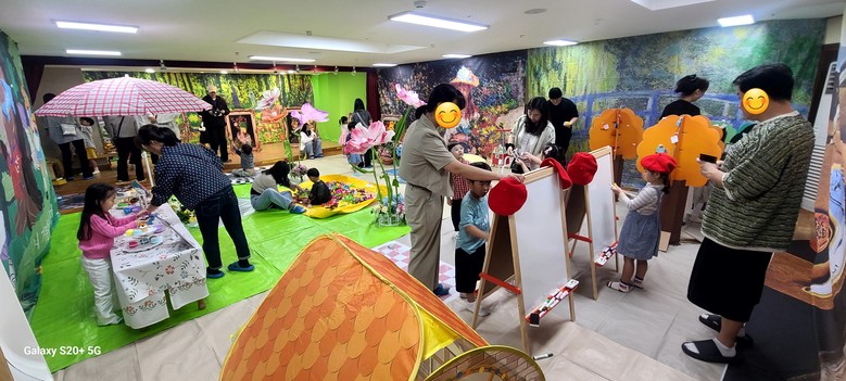 행사는 ▲우리반의 그림책 놀이 이야기 ▲놀면서 만나는 명화(모네 정원 속 포토존 촬영, 이상한 나라의 앨리스 착시체험, VR 반고흐 명화체험 등) ▲신기한 책방(착시·팝업·명화·AI루카책방, ZEP퀴즈왕 도전) ▲문화 예술놀이터(해바라기 재구성 포토존 체험, 창의드로잉 아뜰리에)▲학부모님께 성인동화책 선물(한강 저서 ‘눈물상자’)드리기 등으로 운영됐다.