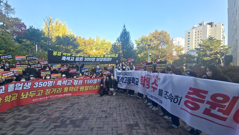 이희원 의원은 규탄사에서 "흑석동의 동양중학교, 중앙대학교부속중학교 졸업자가 올해 339명인데 흑석고등학교 학년 정원이 150명이 돼버리면 동네 아이들 절반이 흑석고에 못들어간다" 고 말했다.
