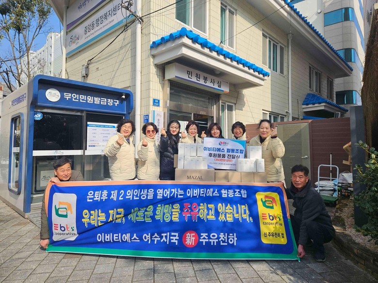 중앙동 관계자는 “명절마다 잊지 않고 이웃을 먼저 생각해 주시는 이비티에스 협동조합 여수지국에 깊이 감사드린다”며 “전해주신 소중한 마음이 어르신들께 잘 전달될 수 있도록 하겠다”고 감사의 뜻을 밝혔다.