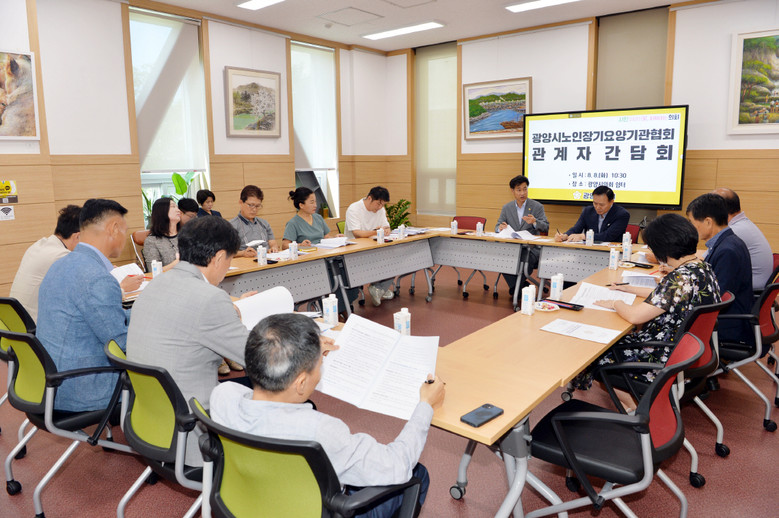 [광양시 세계타임즈=우덕현 기자] 광양시의회(의장 서영배)는 8일 광양시의회 쉼터에서 노인장기요양기관 종사자 처우 개선을 위한 관계자 간담회를 개최했다.