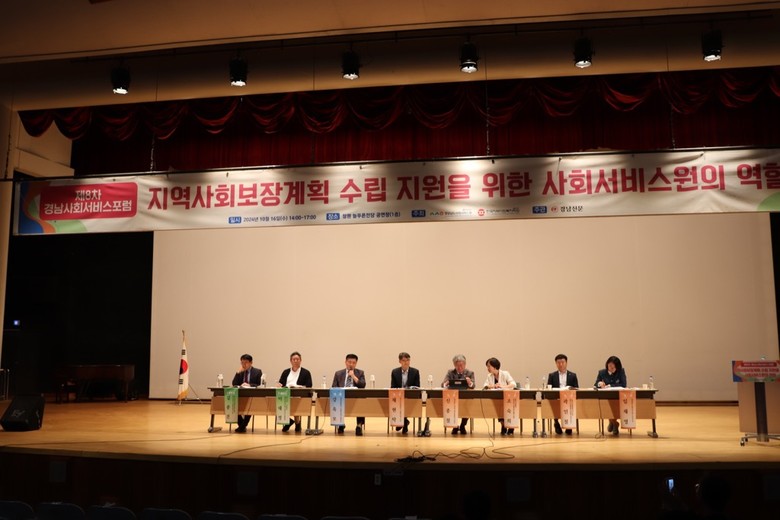 먼저 김종건 동서대학교 사회복지학과 교수와 이대영 중앙사회서비스원 혁신기획부장의 주제발표를 시작으로 채현탁 교수(대구사이버대학교 사회복지학과), 신종철 의원(경상남도의회 문화복지위원회), 조숙희 팀장(창녕군청 행복나눔과), 임채영 수석연구원(경상남도사회서비스원)의 종합토론으로 이어졌다.