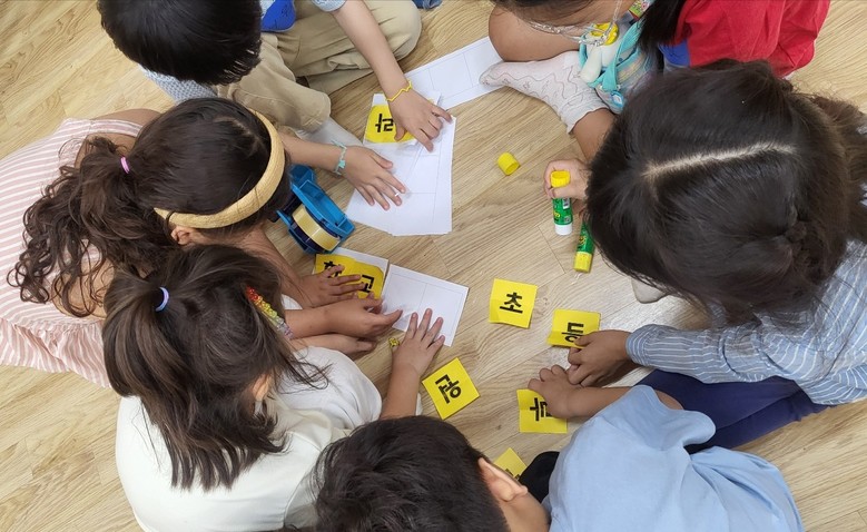 조별로 숲에서 함께 찾은 보물 글자 카드를 연결하여 단어를 만들어가는 과정에서 생각을 키우고, 서로 의견을 나누고 도움을 주고받으며 자연스럽게 협동의 중요성을 깨닫게 되었다.