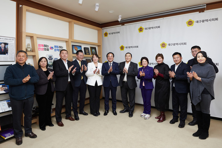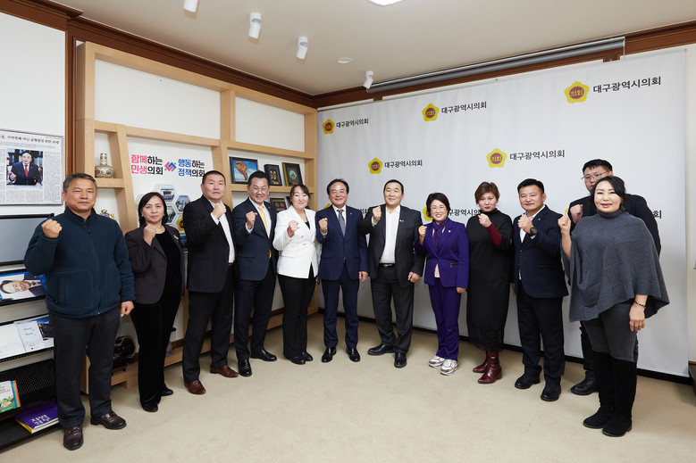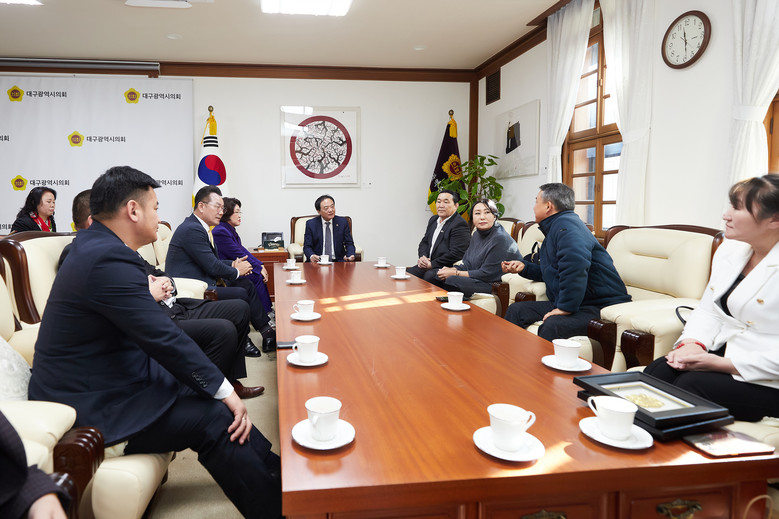 [대구 세계타임즈=한윤석 기자] 대구시의회 이만규 의장과 이재화 국민의힘 원내대표, 손한국 의원은 11월 28일(화) 오전 11시 30분 시의회 접견실에서 대구시 관광·체육분야 시찰 및 국제교류 협의를 위해 내방한 몽골 울란바토르시 체육회장 간볼드 잠발(Ganbold Jambal) 일행과 면담했다.