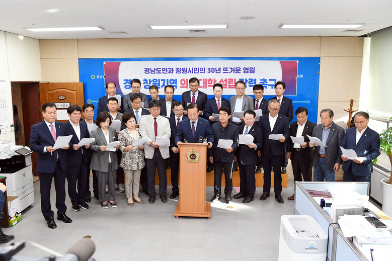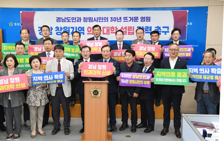 [경남 세계타임즈=최성룡 기자] 경남도의회 창원지역 도의원과 창원특례시의회 시의원 등 50여명이 창원지역 의과대학 신설을 위해 함께 팔을 걷고 나섰다.