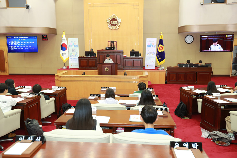 청소년 의회교실은 학생들이 1일 도의원이 되어 본회의장에서 의장 선거, 안건처리, 2분 자유발언 등 의정활동을 체험하는 프로그램이다.