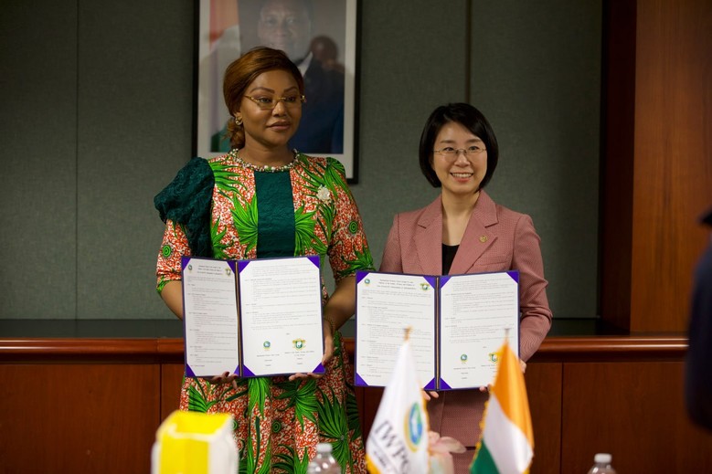 | ▲IWPG와 코트디부아르 여성가족아동부가 지난해 주유엔 코트디부아르 대사관에서 MOA를 체결하고 있다. |