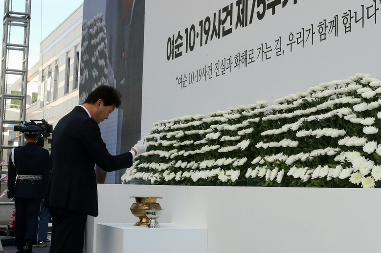[전남 세계타임즈=우덕현 기자] 전라남도의회 서동욱 의장은 19일 고흥문화회관 광장에서 열린 여순 10·19사건 제75주기 합동 추념식에 참석했다.