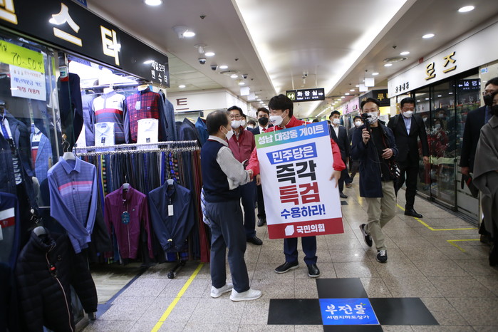 [세계타임즈 이진화 기자]국민의힘 이준석 대표가 18일 오후 부산 부산진구 NC백화점 서면점 앞에서 '성남 대장동 게이트 민주당은 즉각 특검 수용하라!'라고 적힌 피켓을 어깨에 메고 '이재명 대장동 게이트 특검 촉구' 도보 1인 시위를 벌였다.