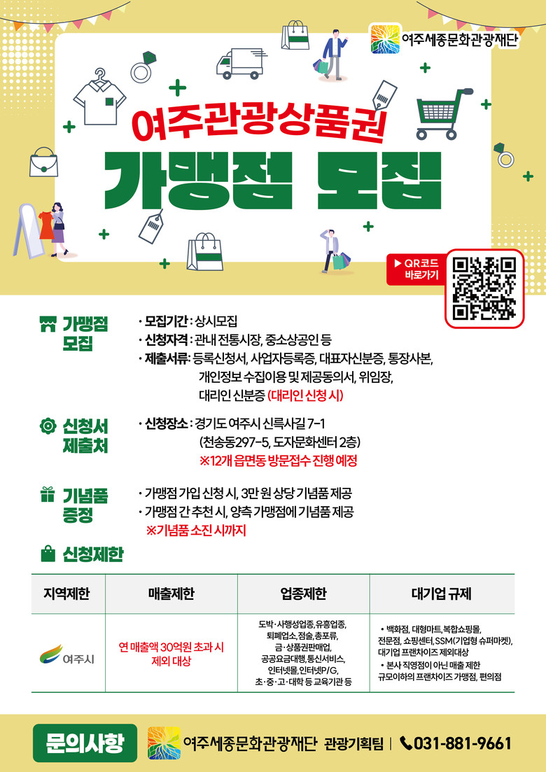 이에 시는 사업 수탁기관인 여주세종문화관광재단과 함께 읍.면.동을 직접 찾아가는 현장 접수 방식을 도입해 소상공인의 참여 문턱을 낮추고, 가맹점을 대폭 확대한다는 방침이다.