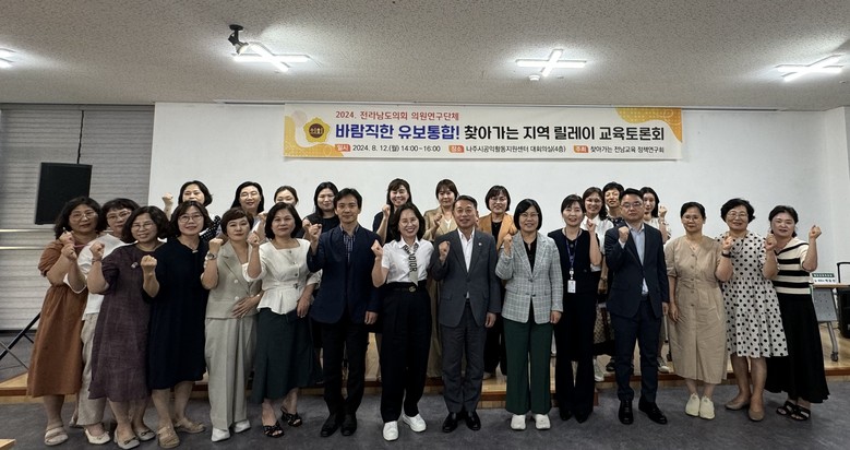 [전남 세계타임즈=우덕현 기자] 전라남도의회 ‘찾아가는 전남교육 정책연구회’는 지난 8월 12일에 나주시공익활동지원센터 대회의실에서 유보통합을 주제로 토론회를 개최했다.