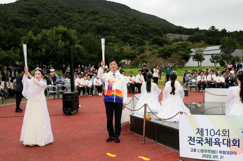 서동욱 의장은 채화 선포문을 낭독한 뒤, 채화한 성화를 인수해 성화봉에 거양하는 퍼포먼스로 전국체전과 전국장애인체전의 성공개최 의지를 알렸다.