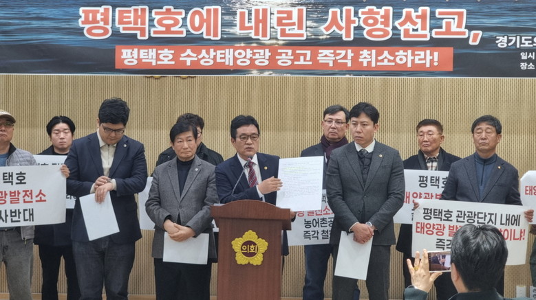 이날 이학수 의원은 △평택호 수상태양광 사업 공고의 즉각 취소 △밀실 면담 경과의 전면 공개와 평택시의 명확한 반대 입장 표명 △평택호 관광 활성화와 인프라 구축을 위한 범정부 대책 수립 △대규모 에너지 사업 추진 시 지자체 동의와 주민 공론화를 의무화하는 법령 개정을 촉구했다.