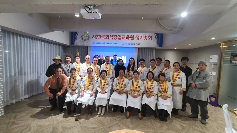 [세계타임즈]최성룡기자 = (사) 한국외식창업교육원(이사장 안형상) 정기총회 가 2022년 12월 29일 (목) 오후 7시 마산관광호텔 2층 연회장에서 50여 명의 명인들과 내빈들이 참석한 가운데 가졌다.