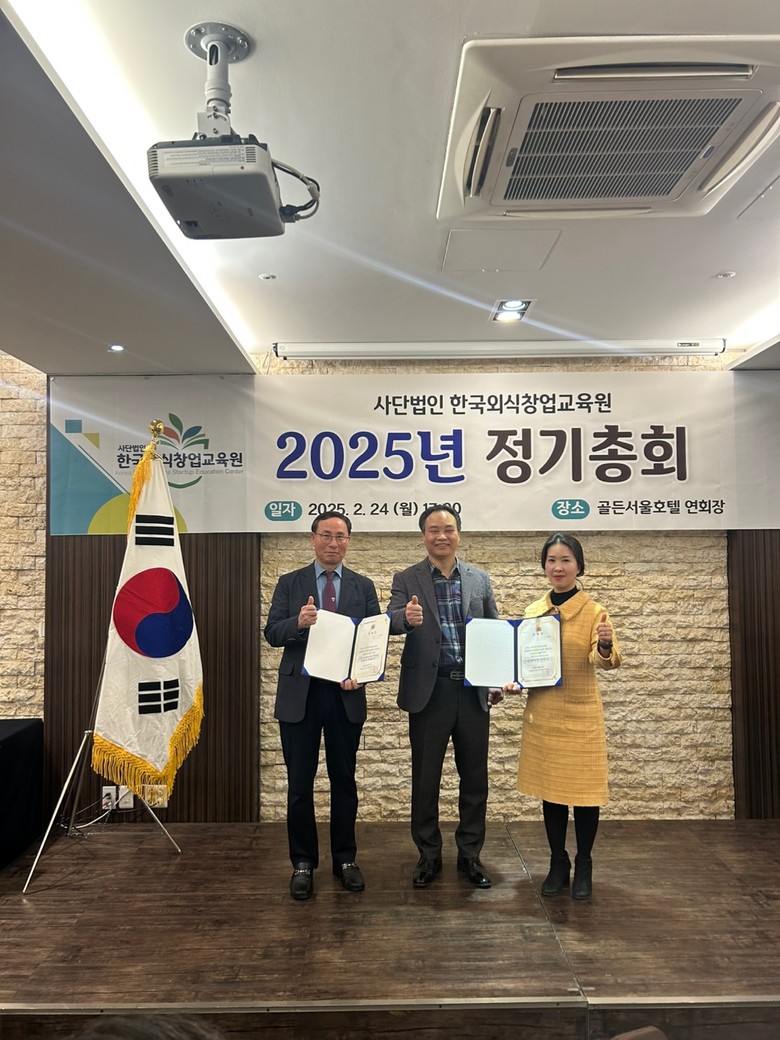 특히 사단법인 한국외식창업교육원 안형상 이사장과 2025년 정기총회 성황리 개최하는 자리에 '주방뱅크'강동원 대표이사와 엄무협약식도 맺었다. 두 단체는 엄무협약을 통해 실질적 협력관계를 발전시켜 나가기로 했다.