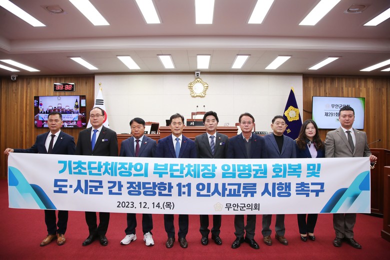 특히, 무안군의회는 임동현 부의장이 대표 발의한 자치단체장의 부단체장 임명보장 및 인사교류 추진 시 1 : 1 상호교류 추진 촉구 건의안을 만장 일치로 채택하고, 임윤택 행정문화복지위원장은 5분 자유발언을 통해 무안군 생활임금 제도 도입 및 필수 노동자 지원체계 마련을 촉구했다.