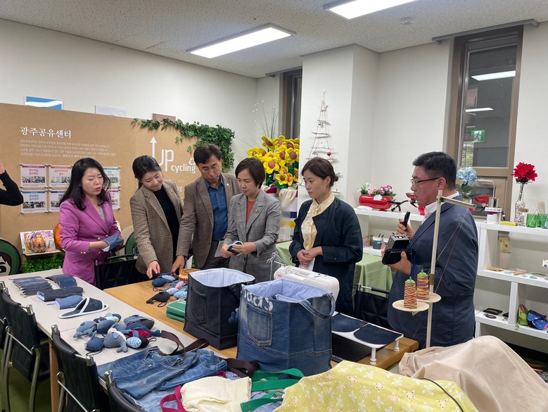 마지막으로, 광주공유센터를 방문하여 공유사업 추진현황과 애로사항을 청취하였다. 공유자원 순환가게, 출산맘 나눔가게 등의 22개의 실과 생활용품과 캠핑용품 등을 포함한 96종의 물품을 취급하는 광주공유센터의 시설을 점검하며, 공유문화 촉진을 위한 방안에 대해 논의하였다.