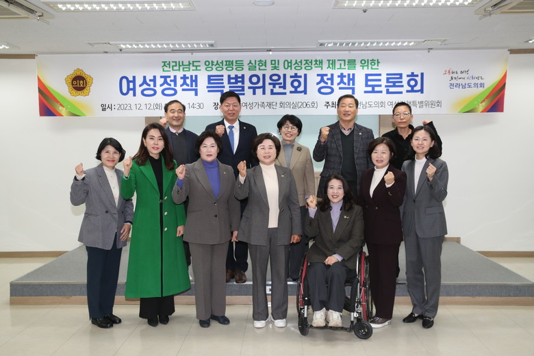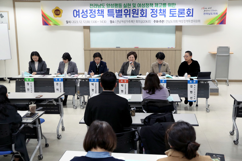 - 성별 관계없이 공평한 권리와 기회를 누리며 함께 성장해야 [세계타임즈=전남 우덕현 기자] 전남도의회 ‘여성정책 특별위원회’(위원장 박현숙)는 ‘전라남도 양성평등 실현 및 여성정책 제고를 위한 토론회’를 지난 12월 12일 전남여성가족재단에서 개최했다.