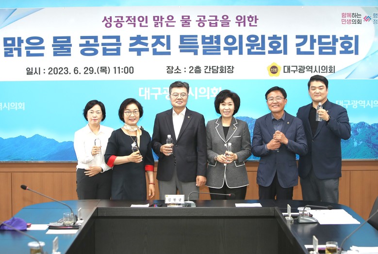 [대구 세계타임즈=한성국 기자] 대구시의회 맑은물공급추진특별위원회는 6월 29일(목) 오전 11시 대구시의회 2층 간담회장에서 ’성공적인 맑은 물 공급을 위한 특별위원회 간담회‘를 개최했다.