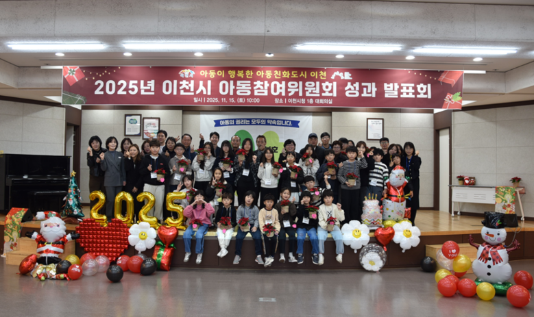 [이천시 세계타임즈=송민수 기자] 이천시(시장 김경희)는 11월 15일(토) 오전 10시, 이천시청 대회의실에서 ‘2025년 아동참여위원회 연간활동 성과 발표회’를 개최했다. 행사에는 이천시 아동참여위원, 아동친화도시 추진위원회 위원 및 보호자 등 60여 명이 참석했다.