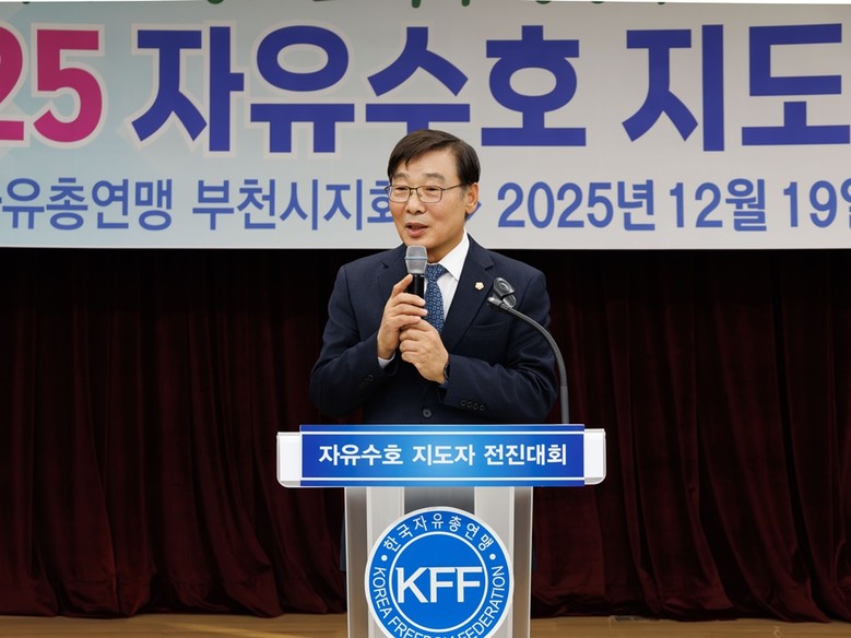 [부천시 세계타임즈=송민수 기자] 김병전 부천시의회 의장은 지난 19일 부천시청 소통마당에서 열린 한국자유총연맹 부천시지회 2025 자유수호 지도자 전진대회에 참석했다.