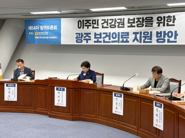 광주시의회와 올바른 광주의료원 설립 시민운동본부 공동으로 주최한 토론회는 박미정 의원이 좌장을 맡았다. 또한 전남대학교 글로벌디아스포라연구소 선봉규 교수가 발제를 맡았고 광주이주민건강센터 강주오 이사장, 광주시청 송혜자 건강정책과장, (사)고려인마을 신조야 대표, 광주캄보디아공동체 박미향 대표가 토론자로 참석했다.