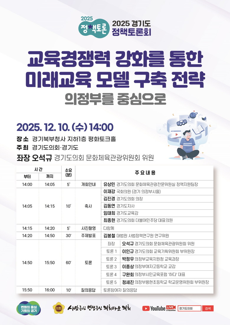 한편 이번 토론회에서 도출된 의견은 향후 경기도의회와 의정부교육지원청의 교육 정책 수립에 적극 반영될 예정이다.