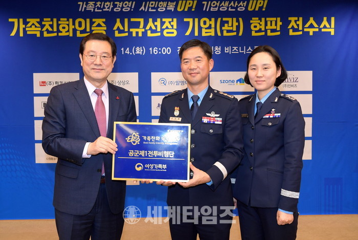 이날 현판 전수식에는 2019년 여성가족부 가족친화인증을 신규로 획득한 주식회사 공영물류, 리바랩 등 22곳(중소기업 20, 공공기관2)의 대표와 임직원이 참여했다.