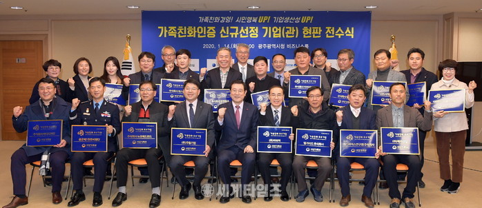 광주광역시는 14일 오후 시청 비즈니스룸에서 ‘2019년 신규 가족친화인증기업 현판 전수식’을 개최하고 신규로 선정된 22곳에 대해 가족친화인증기업 현판을 수여했다.
