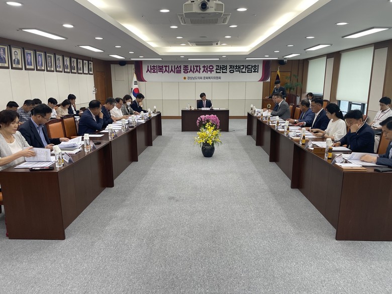 [경남 세계타임즈=최성룡 기자] 사회복지시설 종사자의 처우 개선에 대한 사회적 목소리가 끊이지 않는 가운데, 경상남도의회 문화복지위원회(위원장 김재웅)는 18일 의정회의실에서 사회복지시설 종사자 처우 관련 정책간담회를 개최했다.