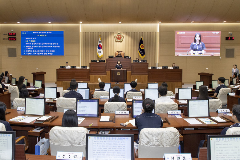 경상북도청소년의회 교실은 2014년에 처음 도입하여 그 동안 도내 61개 학교, 3,700여명이 체험하였으며, 미래의 유권자인 도내 초·중·고등학생들이 1일 도의원이 되어 도의회 본회의장에서 의원의 의정활동과 민주적 의사결정과정을 직접 체험하는 프로그램이다.