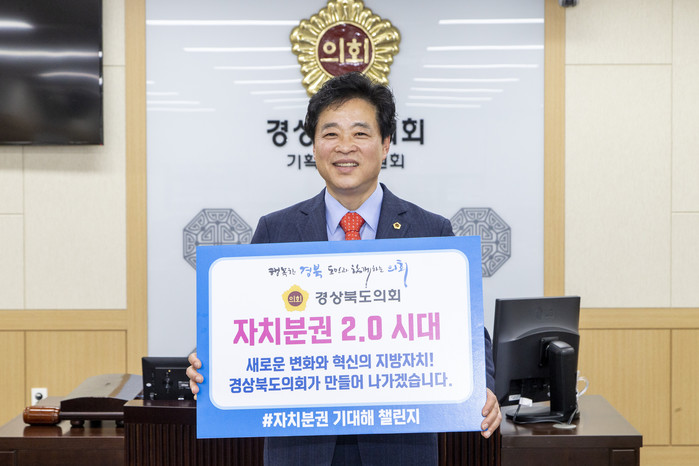 이 의원의 이번 챌린지 동참은 지난 21일 도기욱 경상북도의회 부의장으로부터 캠페인 지명을 받아 26일 경북도의회에서 진행됐다. 이날 캠페인에서 이 의원은 “지방의회의 오랜 염원이던 지방자치법 개정안이 32년이라는 긴 논의 끝에 지난 연말 개정됐다.”면서, “도민이 주인이 되는 실질적인 자치분권 실현을 위해 적극 노력해 나가겠다.”고 밝혔다.