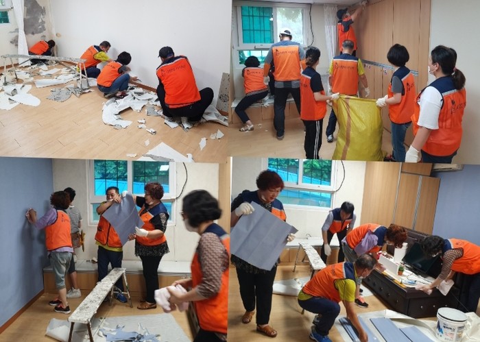 [대전=세계타임즈 이장성 기자] 따뜻한 나눔을 꾸준히 실천하고 있는 대전광역시 SNS 8천명 봉사단체 사단법인 사랑의 사다리 밴드(리더 이정제)는 10일, 오전8시 장태산 휴양림에 위치한 한마음 시각장애인거주시설(원장 유광협)에서 도배봉사로 우리 사회의 따뜻한 사랑을 실천 하였다.