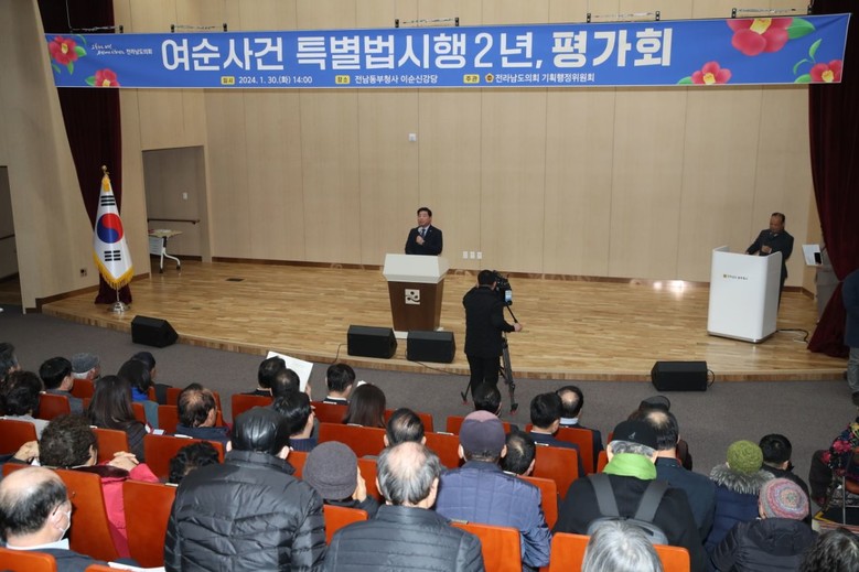 [전남 세계타임즈=우덕현 기자] 전라남도의회 기획행정위원회(위원장: 신민호)는 1월 30일 전남동부청사 이순신강당에서 여수·순천 10·19사건 진상규명 및 희생자 명예회복에 관한 특별법(이하 여순사건법) 시행 2주년을 맞아 평가회를 개최했다.